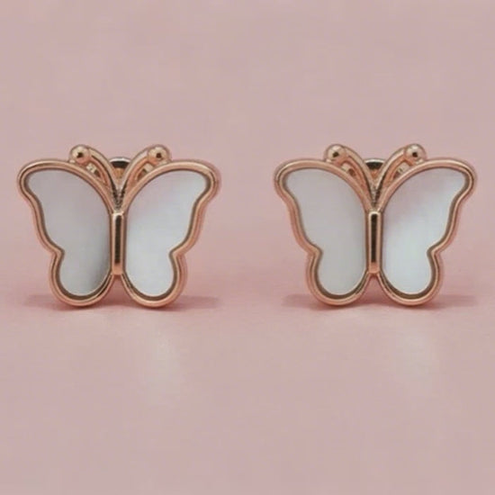 Glitzheaven 925 Sterling Silver Butterfly Stud Earrings – Rose Gold Finish with White Enamel