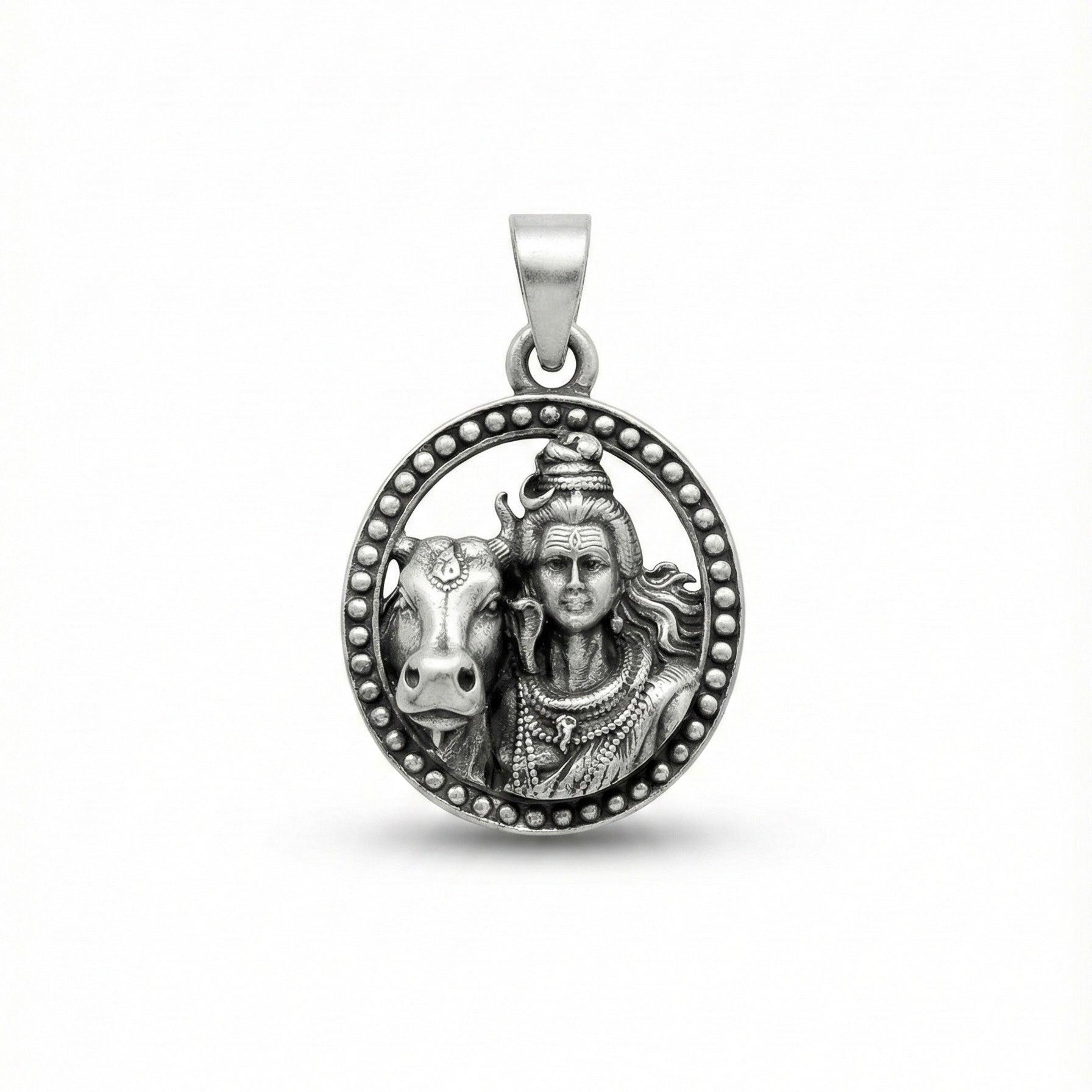 GlitzHeaven Divine 925 Sterling Silver Lord Shiva & Nandi Medallion Pendant – Symbol of Devotion, Strength & Balance